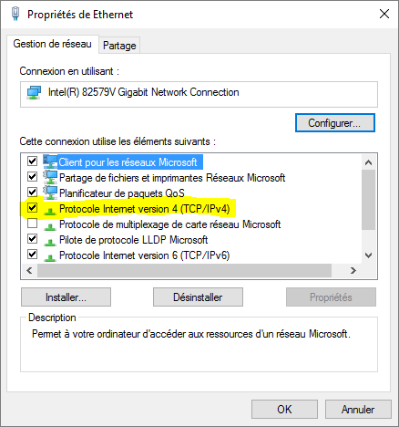 4. Double cliquez sur "Protocole Internet version 4 (TCP/IPv4)" dans la liste des éléments
